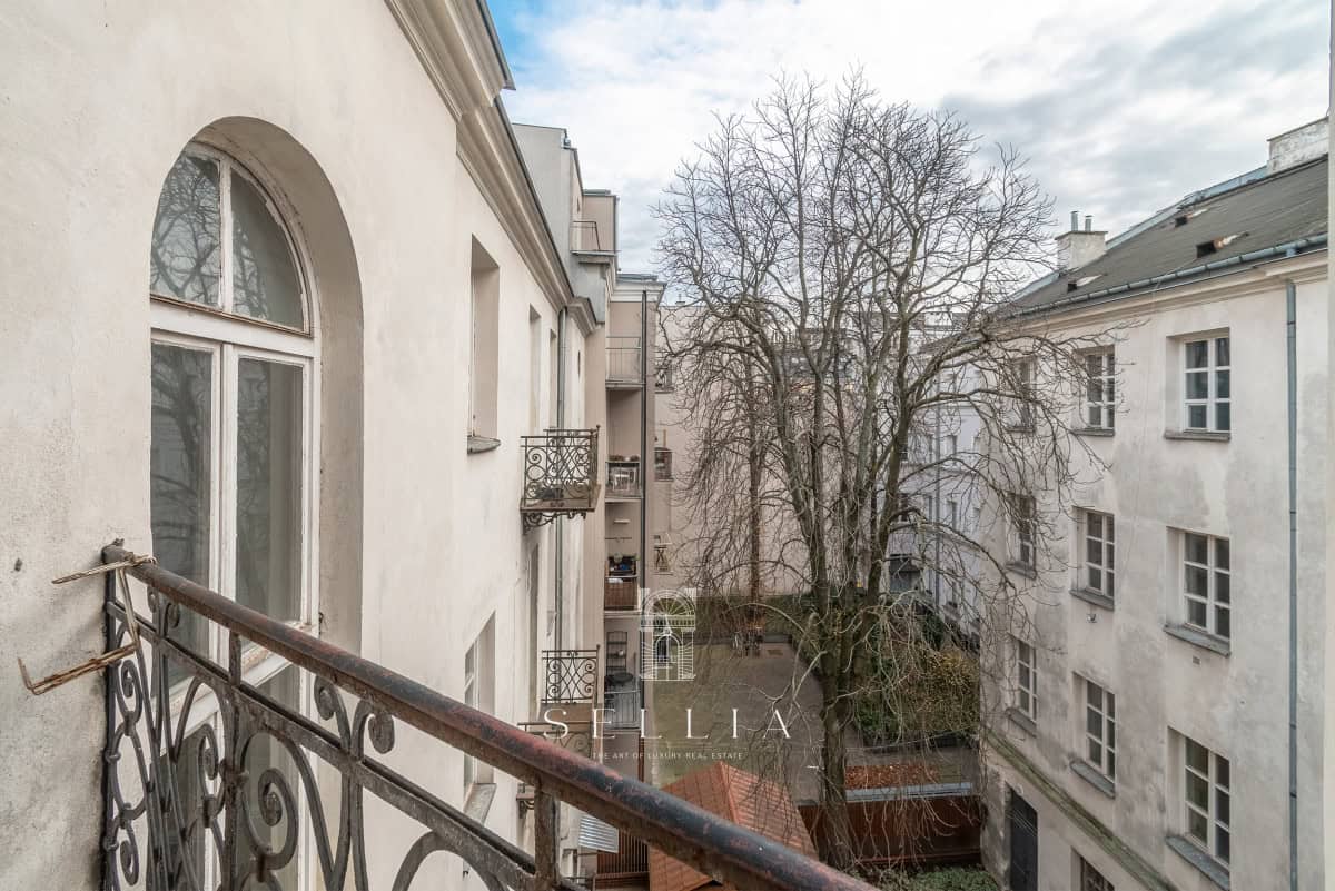 The property is located in the heart of Śródmieście, in the historic Kutner tenement house on Hoża Street, adjacent to Hala Koszyki.
