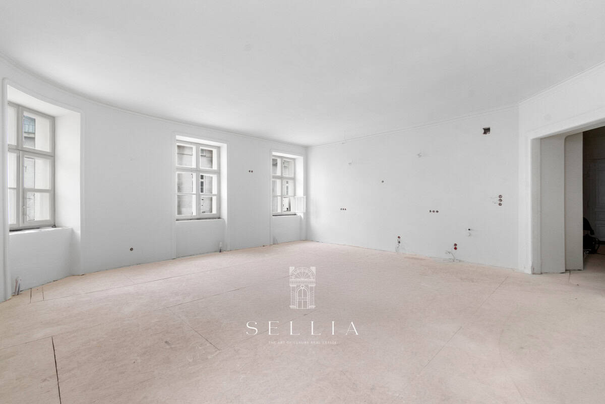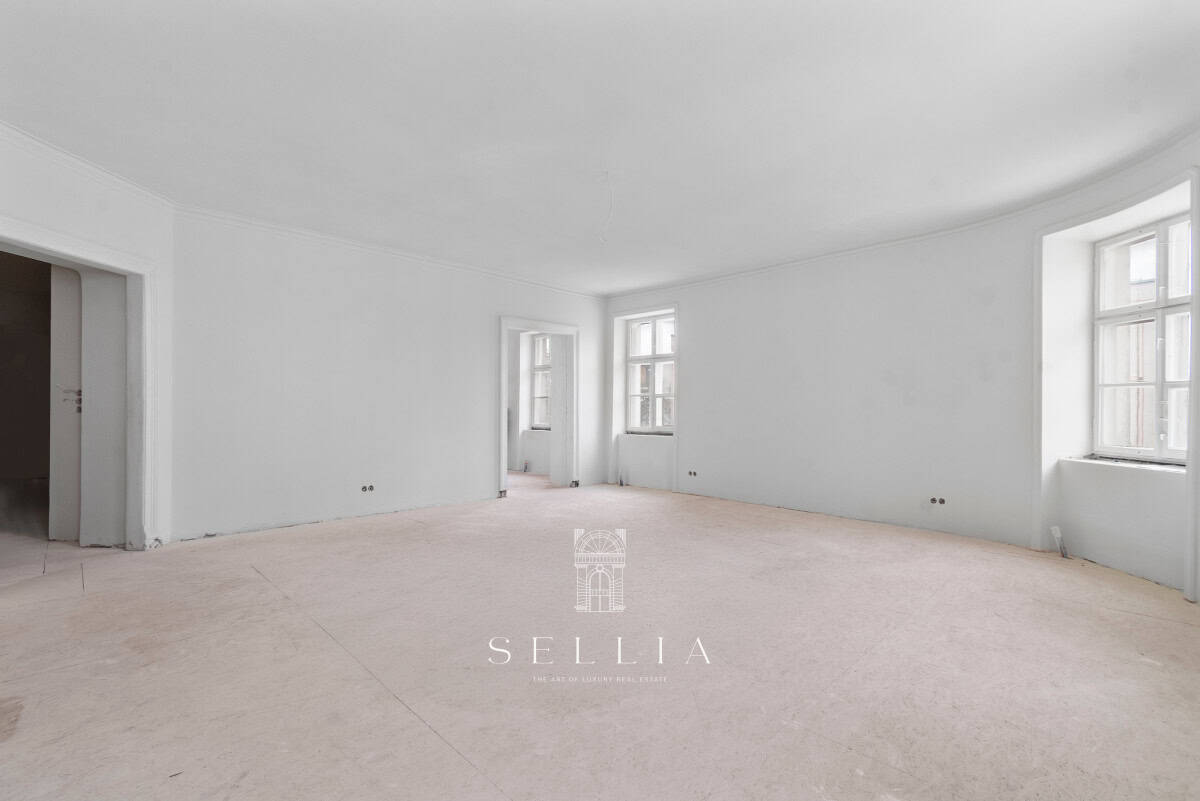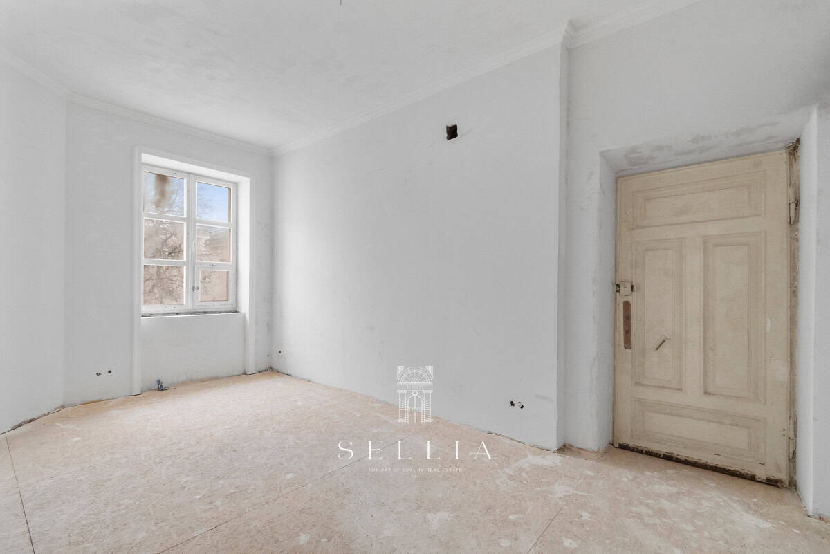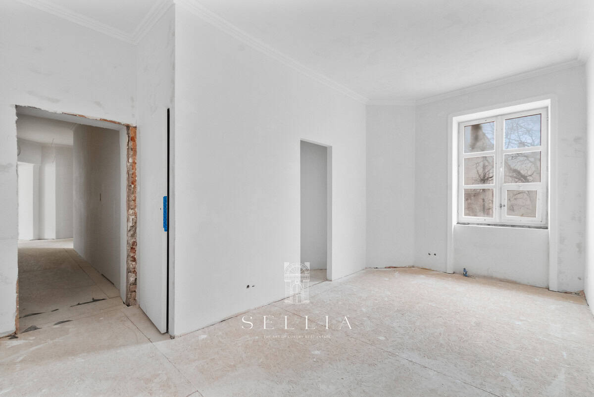 Unique and exceptionally spacious apartment currently under finishing, located on the top floor of a historic townhouse in the heart of the city.