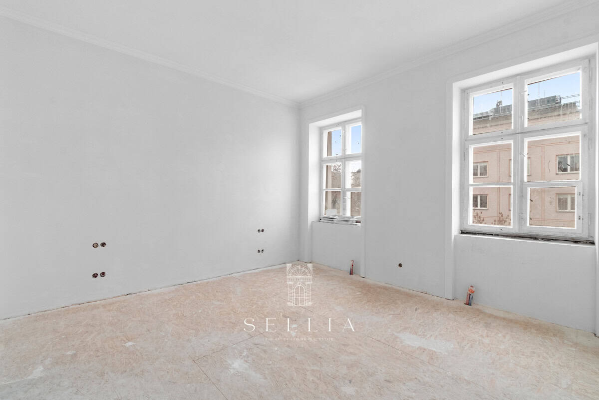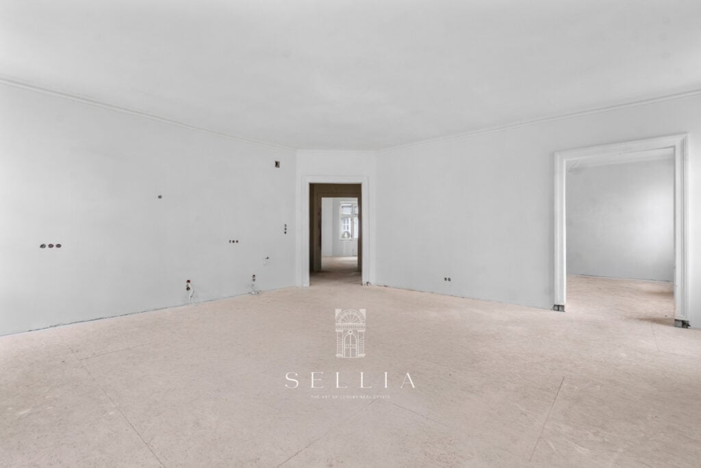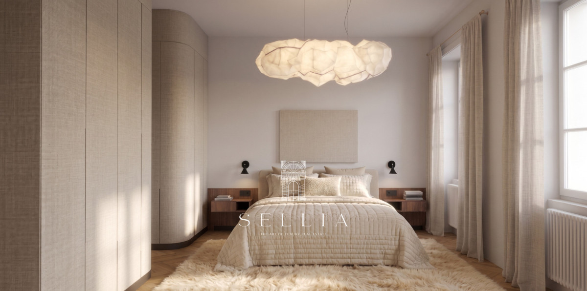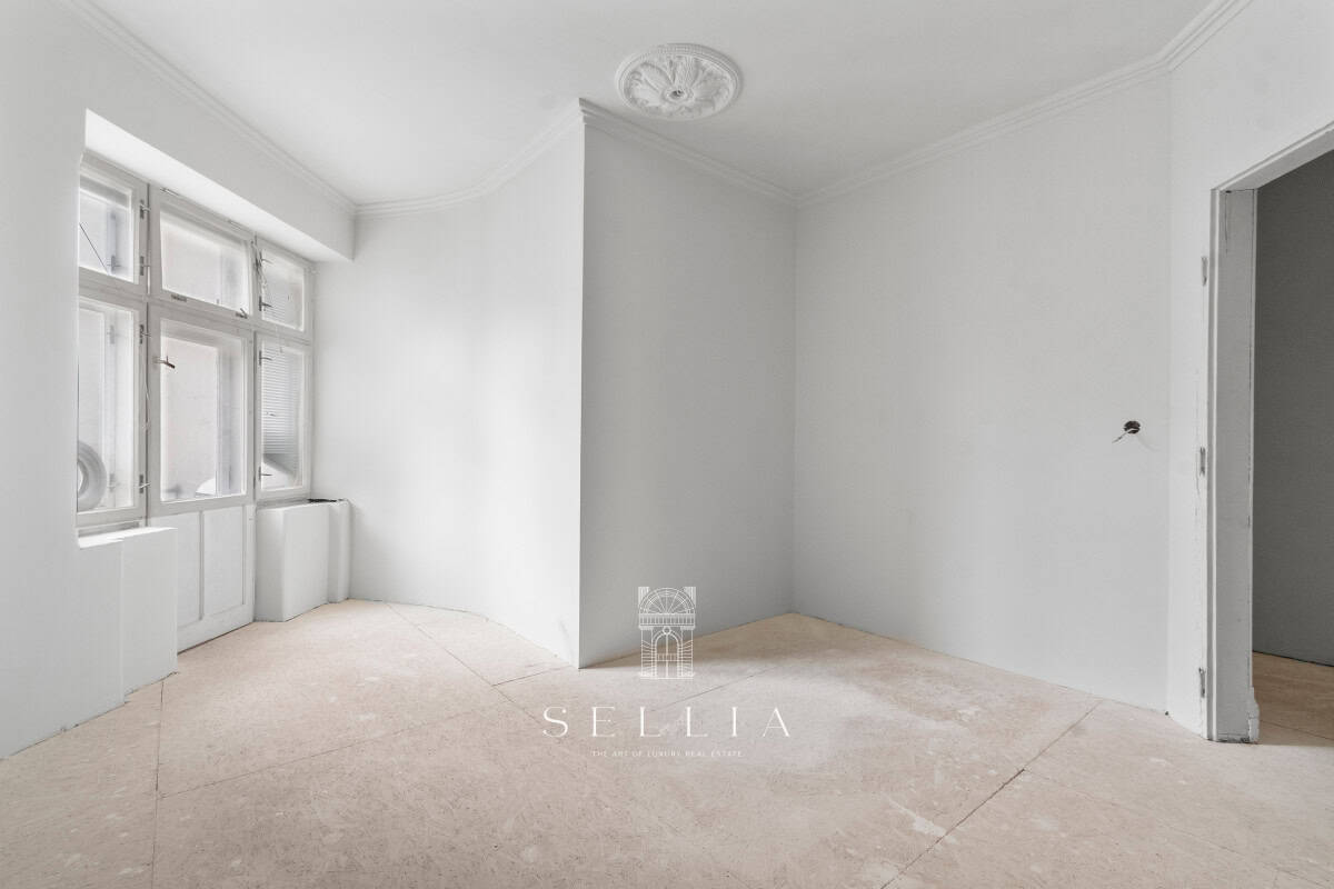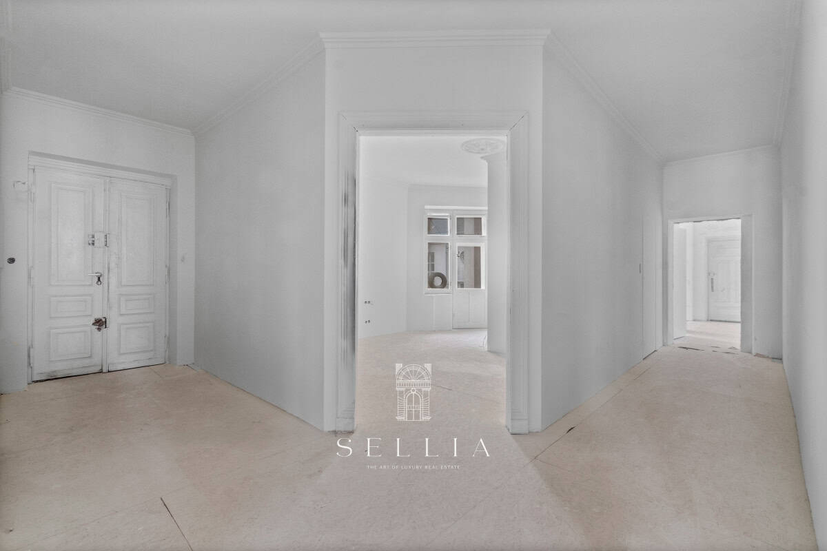 Unique and exceptionally spacious apartment currently under finishing, located on the top floor of a historic townhouse in the heart of the city.