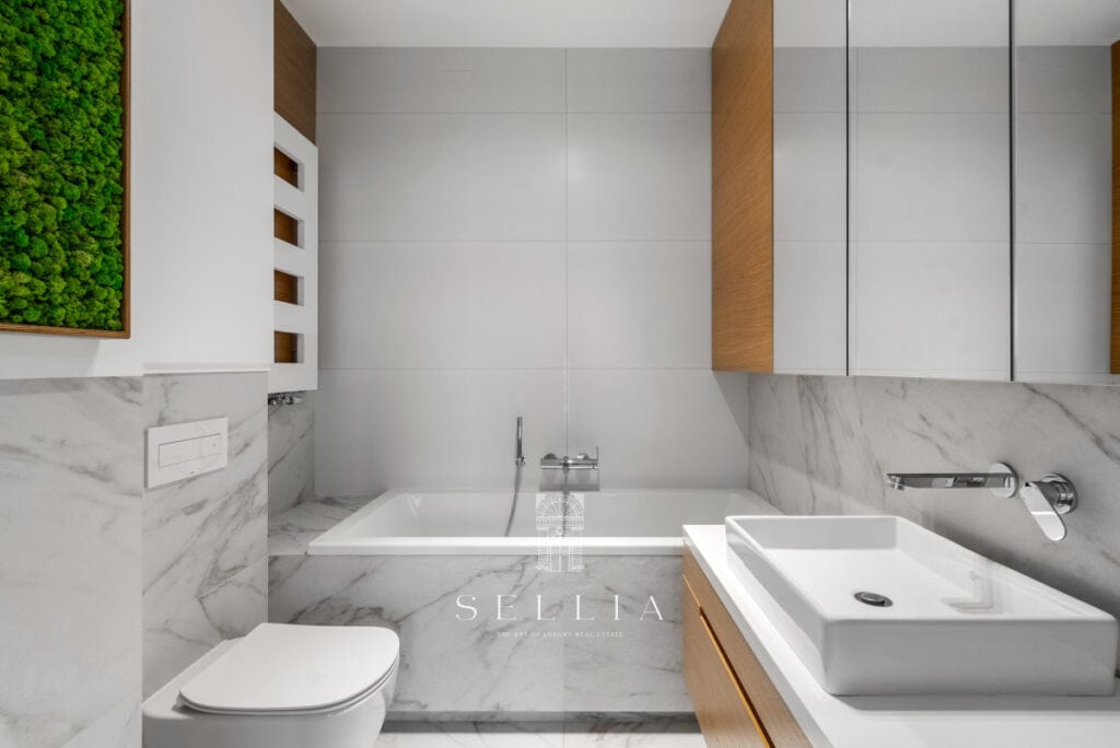 Jasne, dobrze doświetlone wnętrza, wysoki standard wykończenia (zabudowy z forniru, ceramika Catalano, płytki ABK, oświetlenie Foscalini oraz…