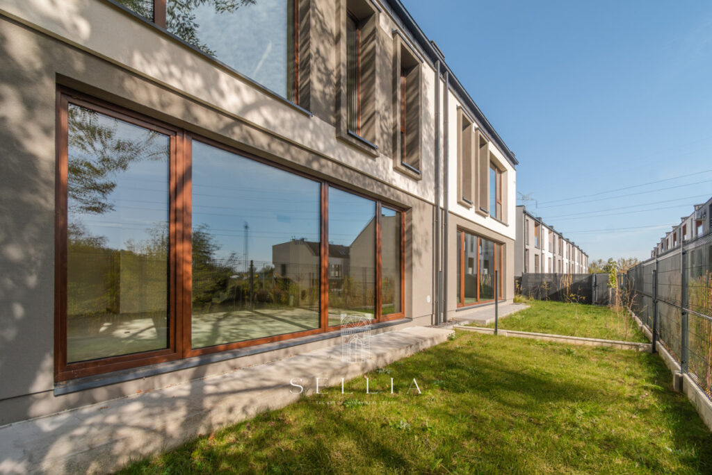 ZIELONA POLANA to kameralne osiedle w Łomiankach Centralnych przy ul. Łąkowej, złożone z ośmiu domów w zabudowie szeregowej, zaprojektowanych przez pracownię DOMENA PROJEKT. Dom w technologii tradycyjnej, murowanej (Porotherm), z garażem w bryle budynku i użytkowym poddaszem, został zaplanowany z myślą o komforcie dla rodziny cztero- lub pięcioosobowej. Duże przeszklenia zapewniają świetne doświetlenie wnętrz, a funkcjonalny układ umożliwia indywidualną aranżację. Osiedle jest ogrodzone, podłączone do mediów miejskich i oferuje prywatne ogródki oraz nowoczesną architekturę sprzyjającą wygodzie i poczuciu prywatności.