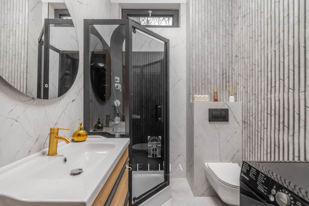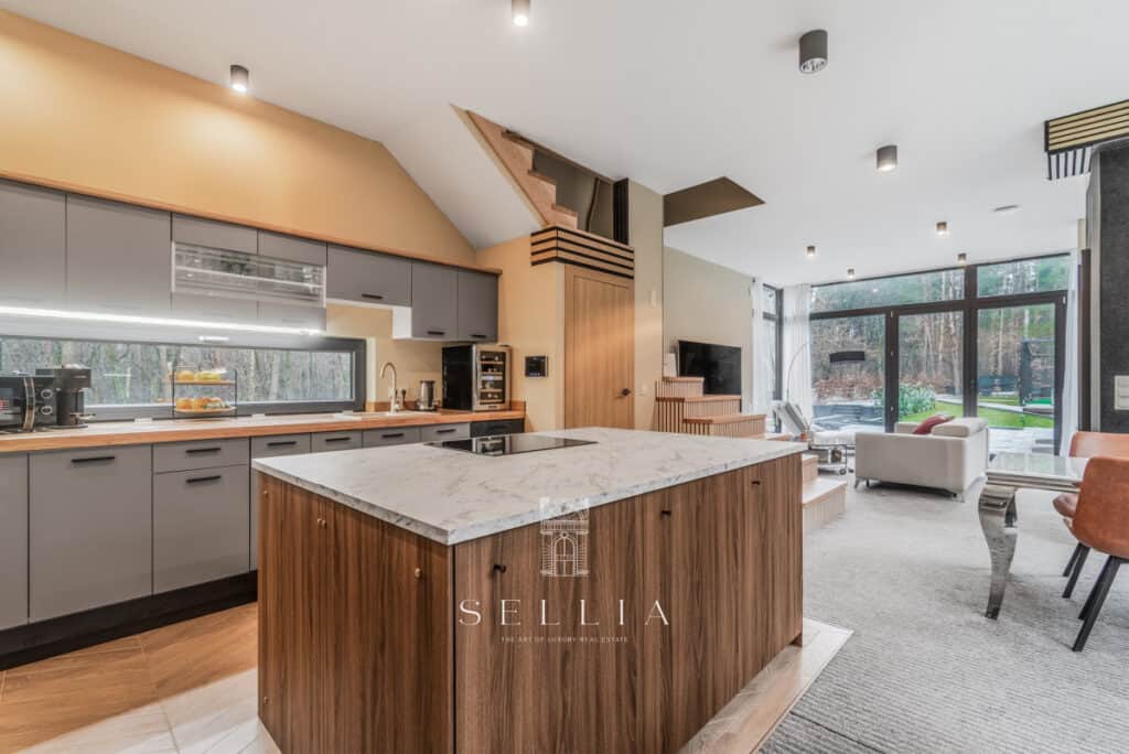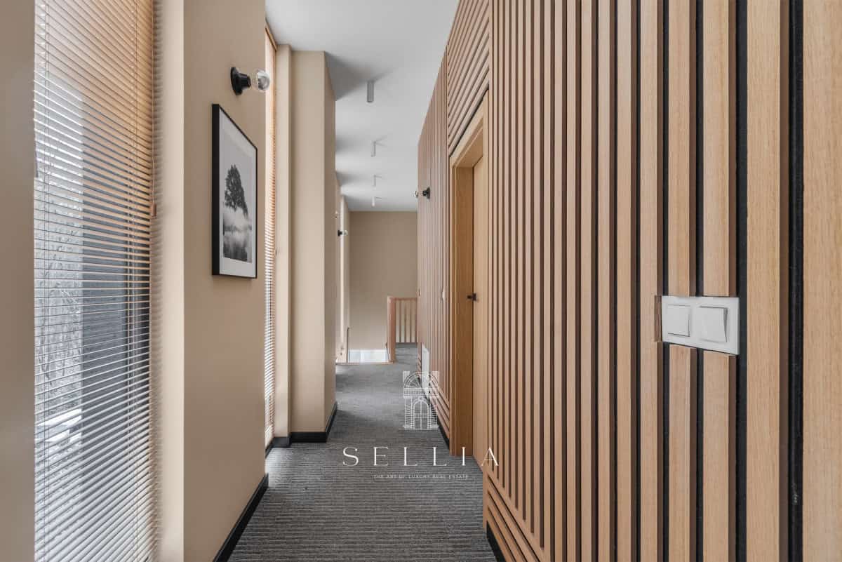 The house was designed with comfort and functionality in mind. Its thoughtful layout makes it ideal for both families with children and people working remotely. High-quality finishes, a home cinema in the basement, a spacious living room, and numerous utility rooms ensure convenience in everyday living. The property is equipped with a modern monitoring system, gate with a digital lock and remote control, providing safety and peace of mind.