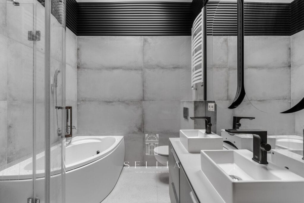 The interior has been beautifully designed and is filled with natural light thanks to the large floor-to-ceiling windows, creating a space full of harmony and comfort.