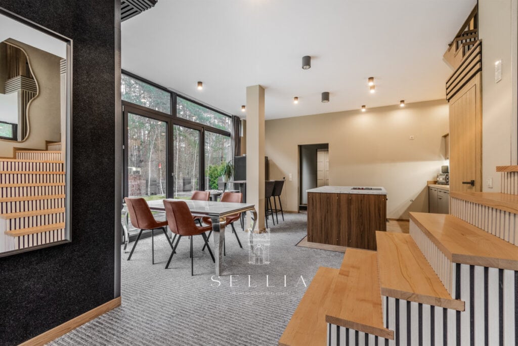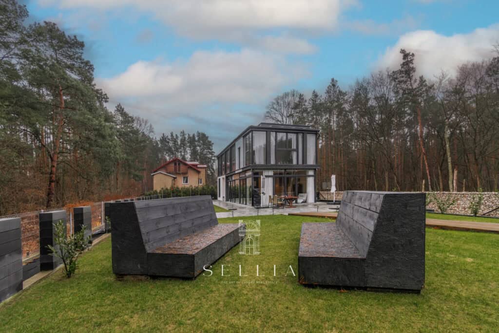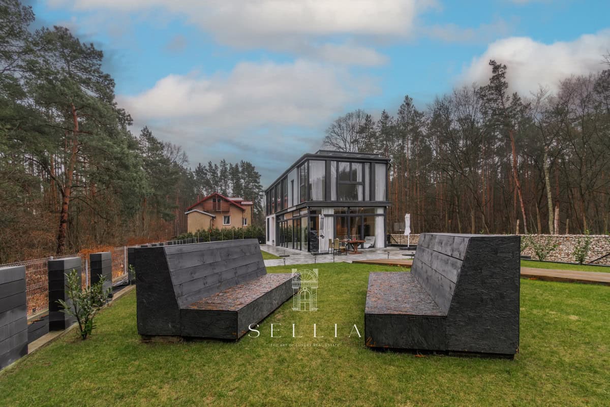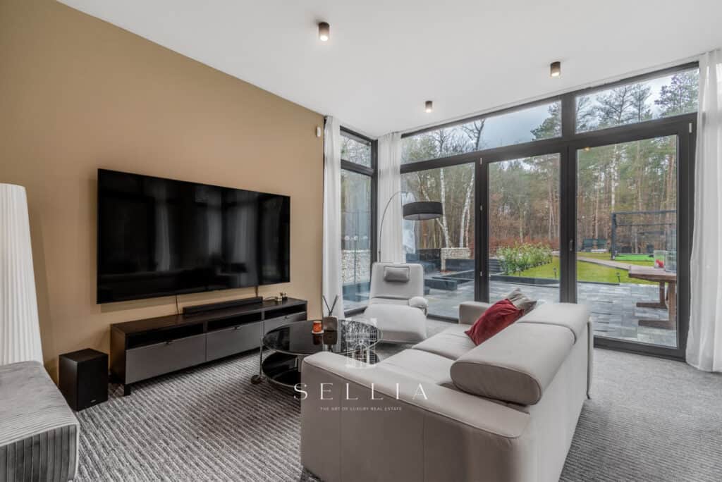 The house was designed with comfort and functionality in mind. Its thoughtful layout makes it ideal for both families with children and people working remotely. High-quality finishes, a home cinema in the basement, a spacious living room, and numerous utility rooms ensure convenience in everyday living. The property is equipped with a modern monitoring system, gate with a digital lock and remote control, providing safety and peace of mind.