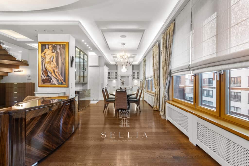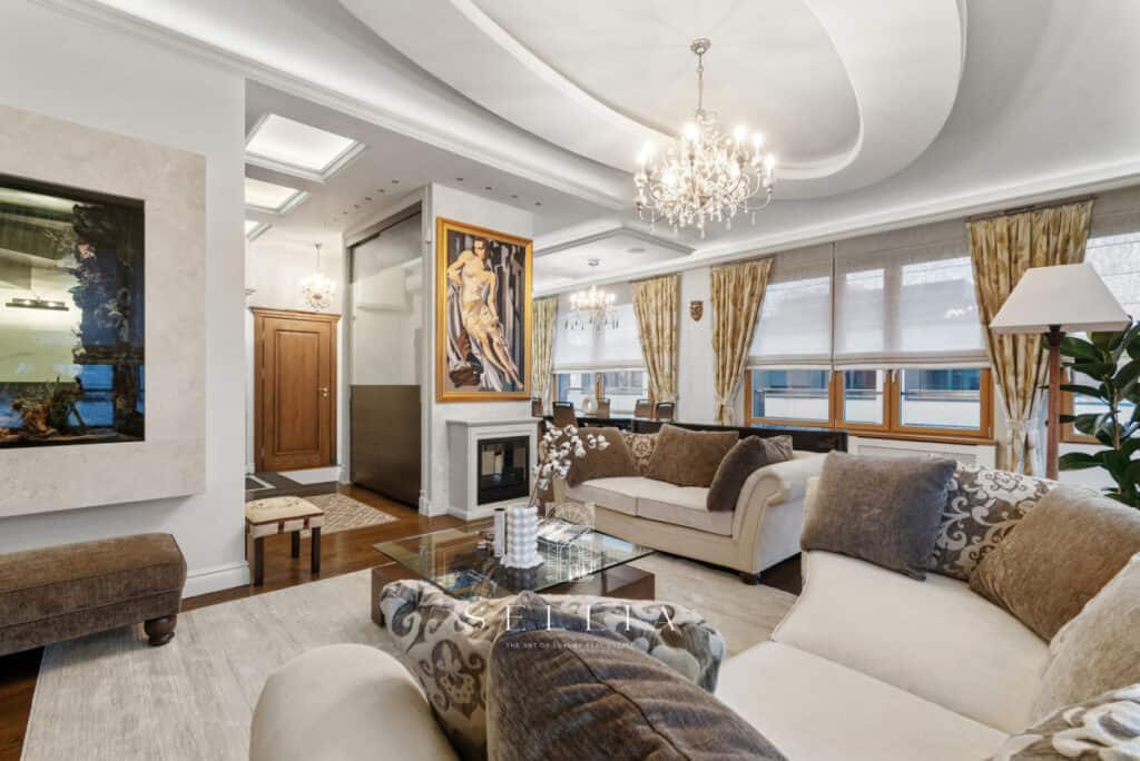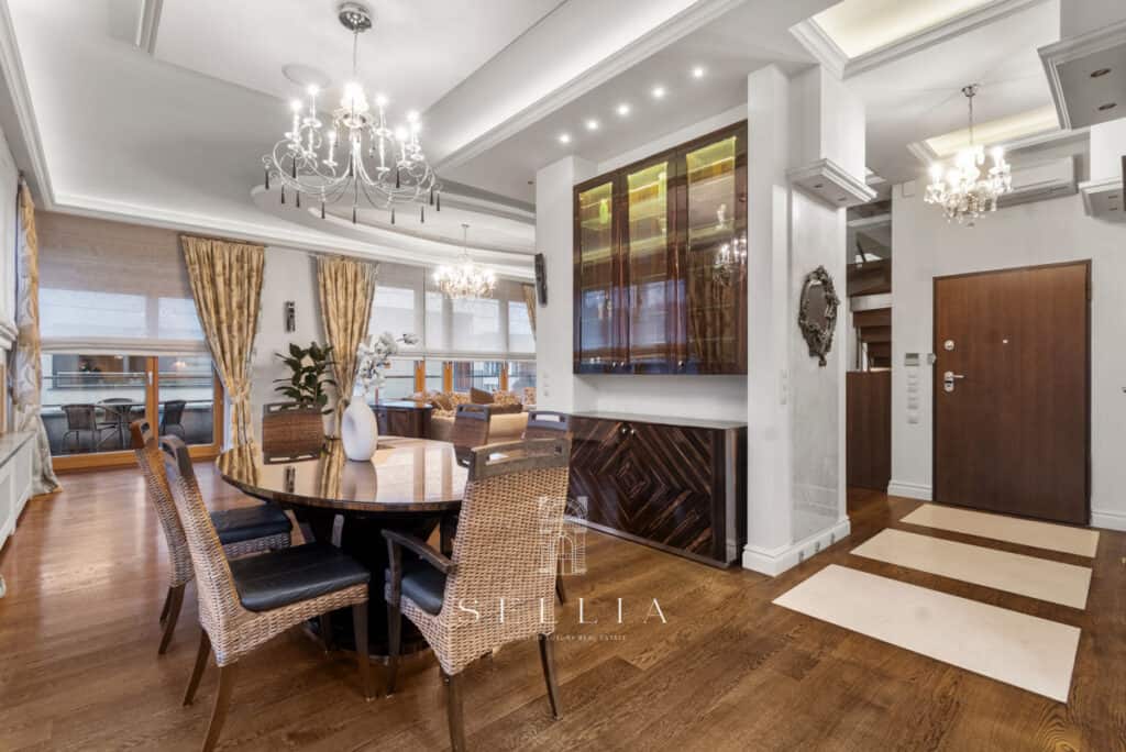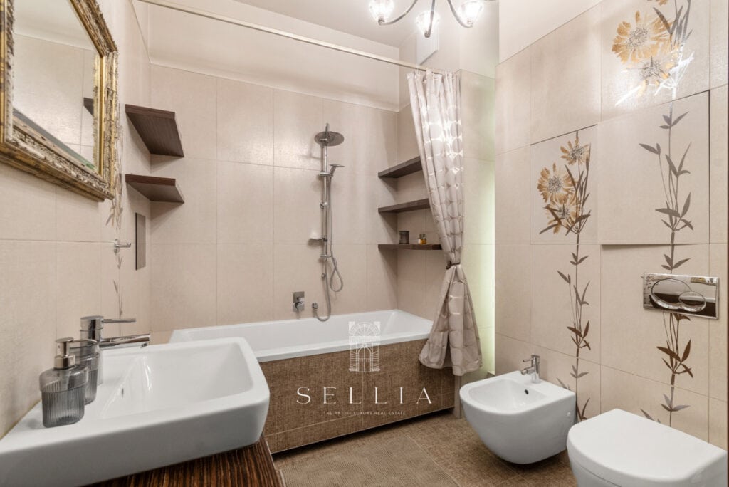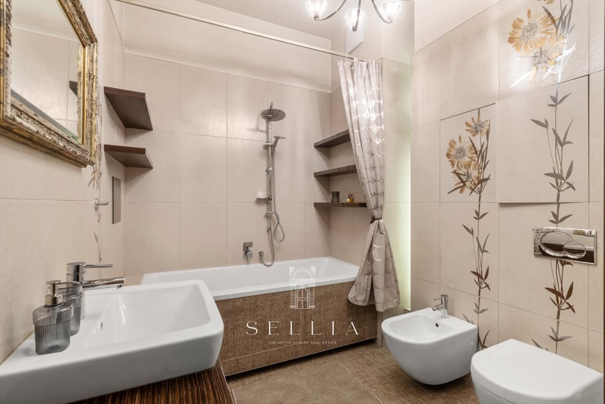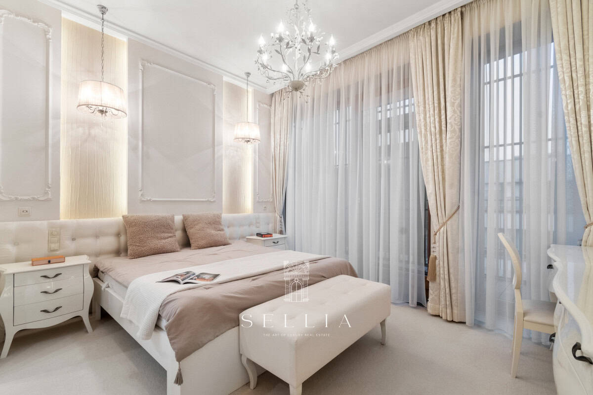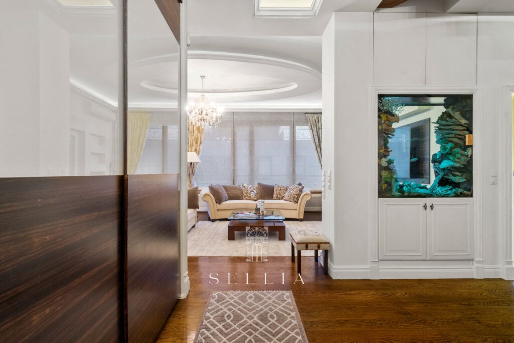 The apartment has been finished to a very high standard, fully furnished and equipped with all essential appliances. The entire space has been designed with great attention to detail, offering refined and elegant finishes that emphasize the character of the property. A standout feature is the large built-in aquarium, an impressive decorative element that adds a unique ambiance to the interior. Two balconies and a private rooftop terrace provide ideal conditions for everyday relaxation and spending time outdoors.
