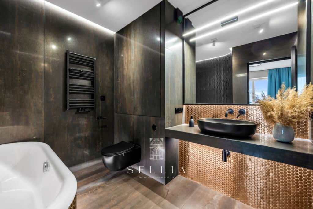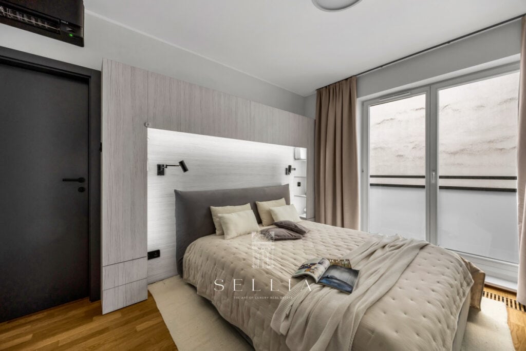 Apartament został wykończony w wysokim standardzie, z dbałością o każdy detal. Wysokiej jakości materiały oraz ponadczasowa aranżacja tworzą harmonijną przestrzeń idealną do życia. Pomieszczenia są klimatyzowane.