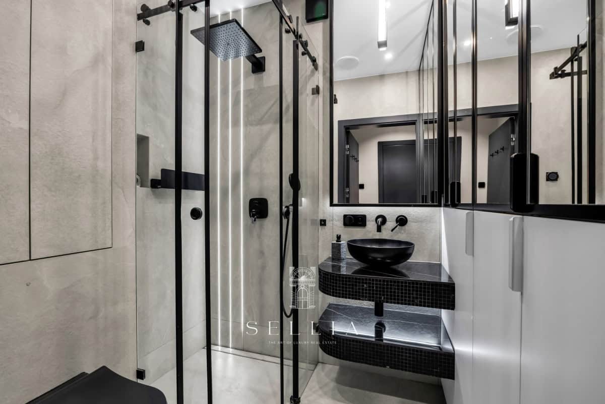 The apartment has been finished to a high standard with great attention to detail. High-quality materials and a timeless interior design create a harmonious living space. All rooms are air-conditioned.