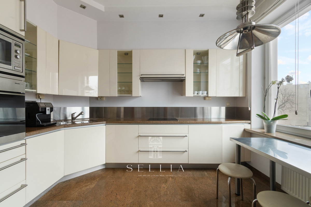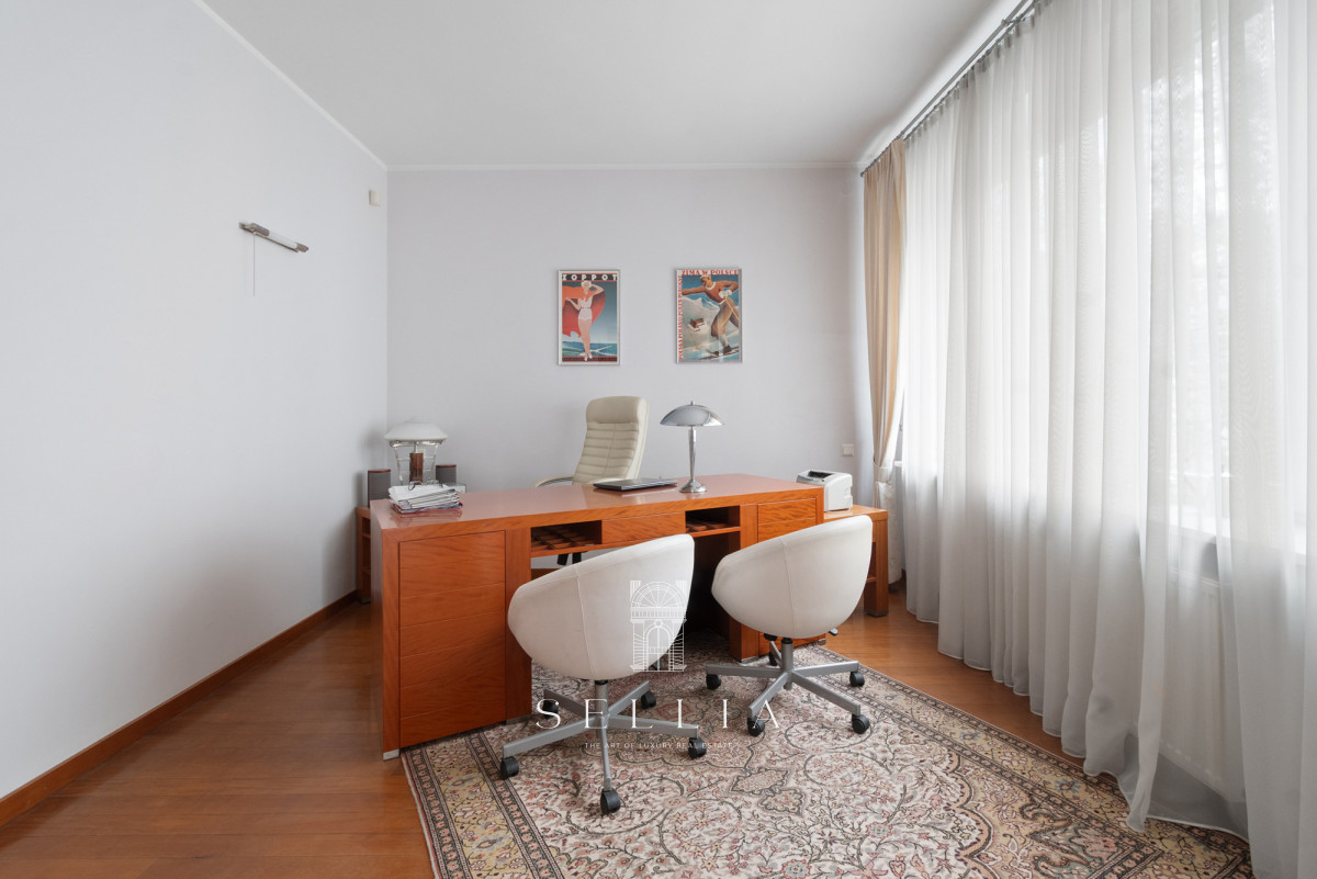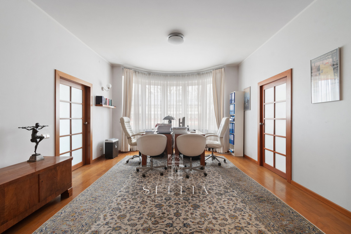 This unique 160 m2 unit is located on the third floor of an elegant, pre-war tenement building with an elevator on the prestigious Aleja Róż (Rose Avenue). The property boasts a classic, timeless finish and an excellent layout, ideal for a quiet office setting, such as a law firm.