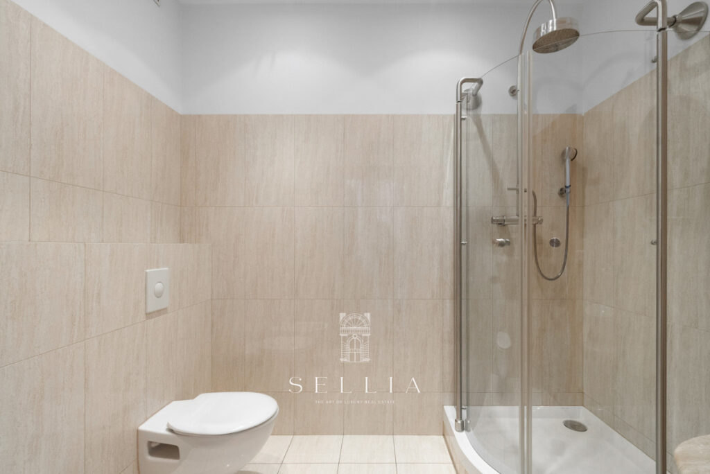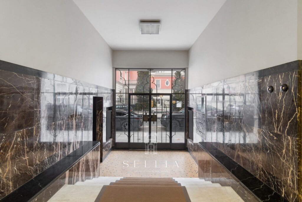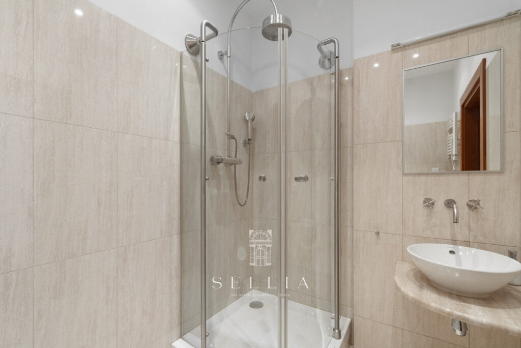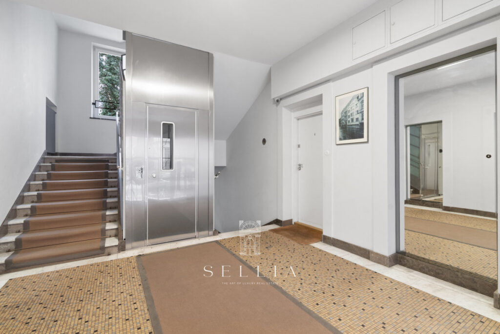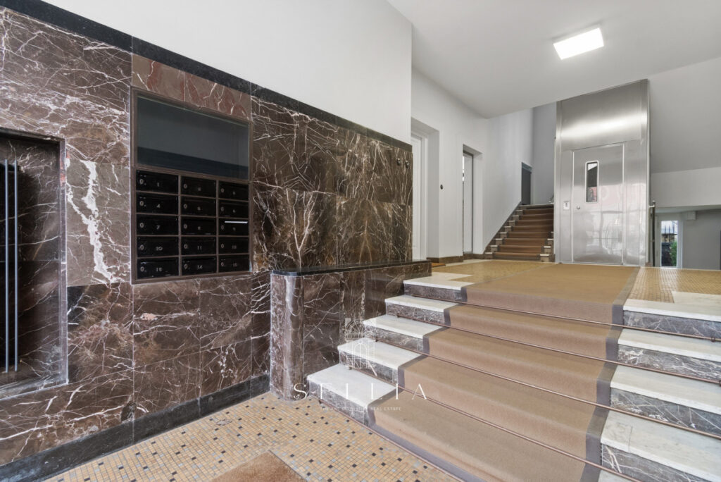 The unit is located in a cozy, well-maintained tenement building with an elevator. The interiors feature high ceilings and a classic style typical of historic residences in this part of the city. The space is bright and in impeccable condition.