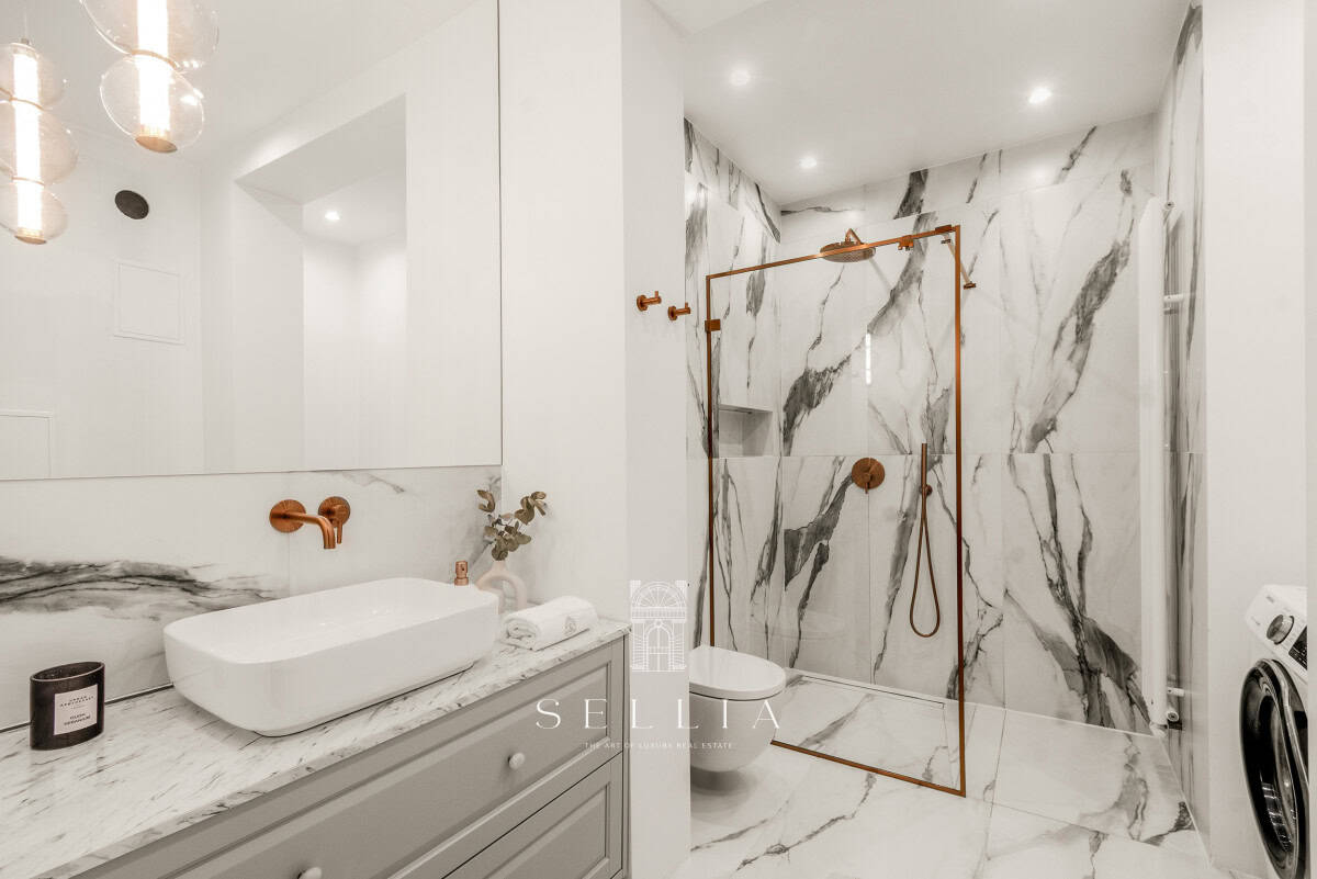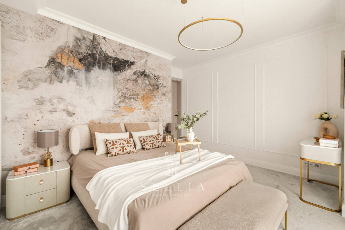 The apartment has been finished to a high standard, with attention to detail and a cohesive design. The functional layout ensures a comfortable division between the living and private areas, enhancing everyday living. The interiors are well-lit thanks to large windows, while materials such as wooden flooring and high-quality stoneware emphasize the elegant character of the space. The apartment is also equipped with air conditioning and built-in furniture, increasing overall comfort and usability.